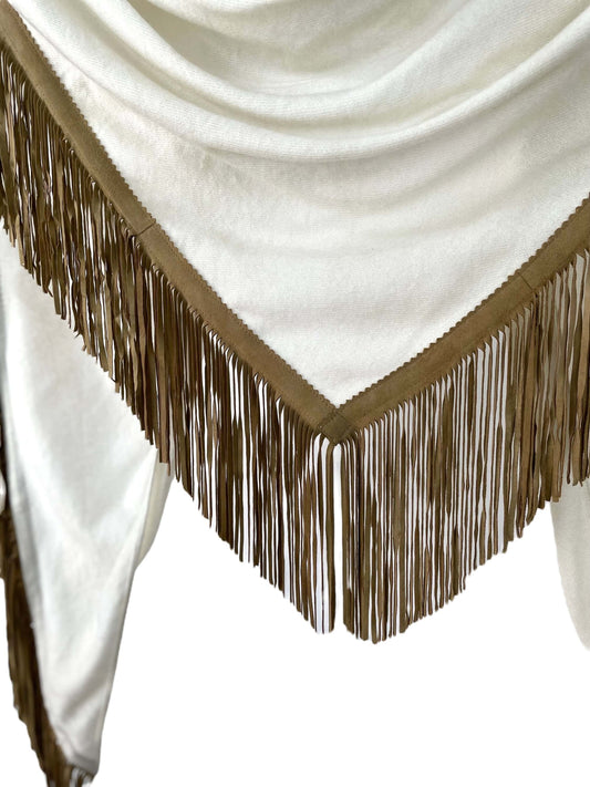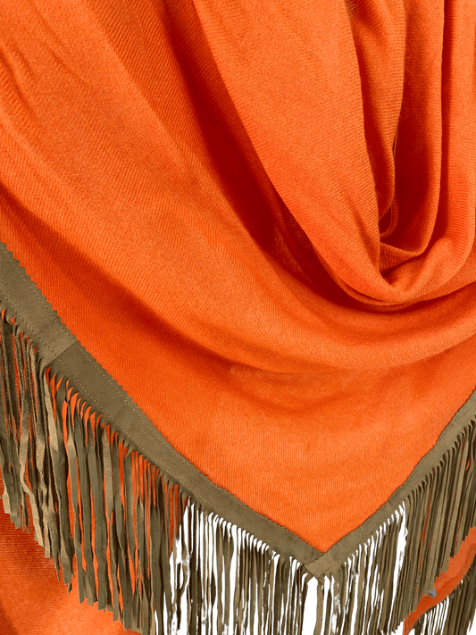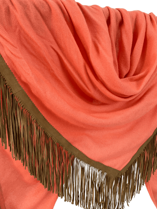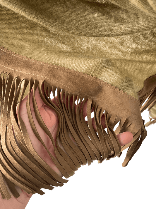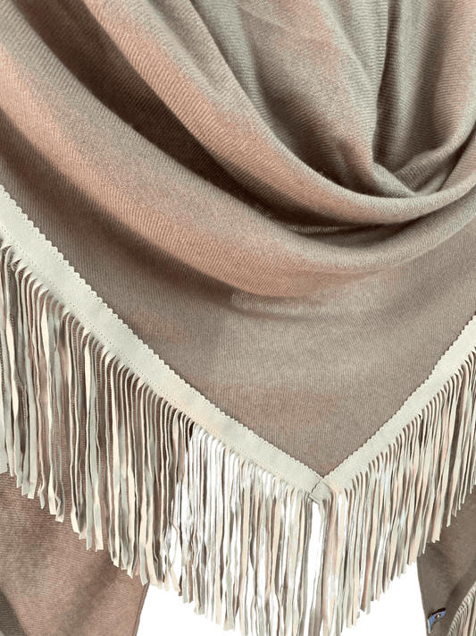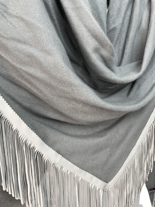 The Open Poncho is crafted from 100% fine woven cashmere and finished with genuine suede fringes. Its open-front design allows for versatile styling—drape it over your shoulders, wrap it like a triangular scarf, or wear it for added warmth. It shares the same luxurious weight and dimensions as our Classic Poncho, offering both comfort and elegance in every season.